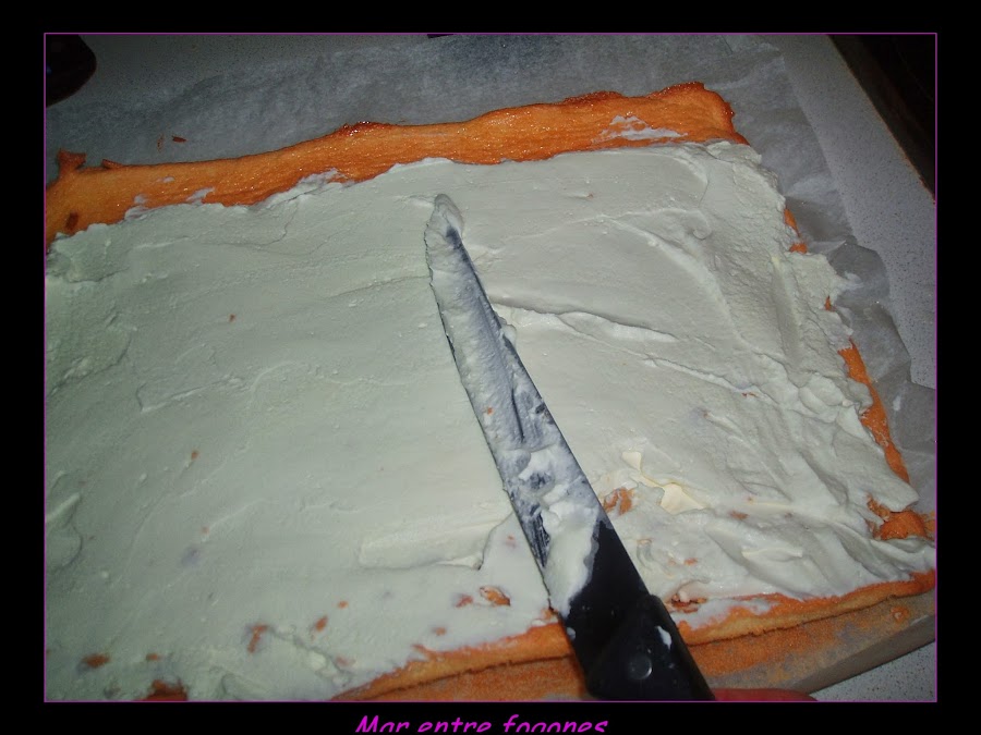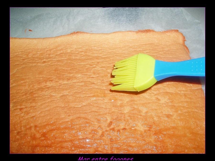 Una vez pintado el bizcocho con el almíbar, nos preparamos para rellenarlo.