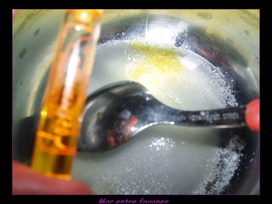 Ponemos en una cacerola pequeña el agua, la esencia y el azúcar.