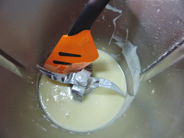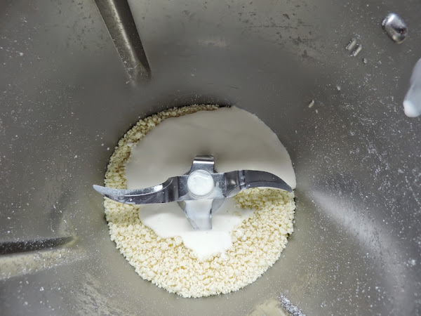 Hacemos la de cobertura blanca, ponemos el chocolate blanco en el vaso del thermomix.