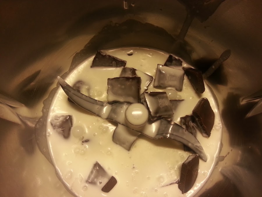 Hacemos la cobertura de chocolate, ponemos los ingredientes de la cobertura en el vaso de la thermomix.