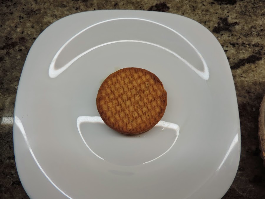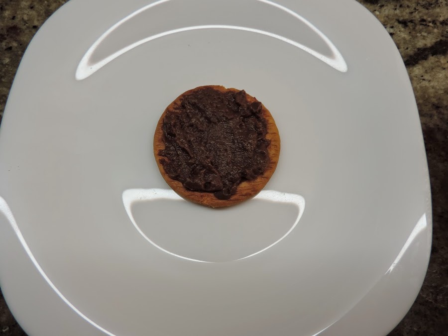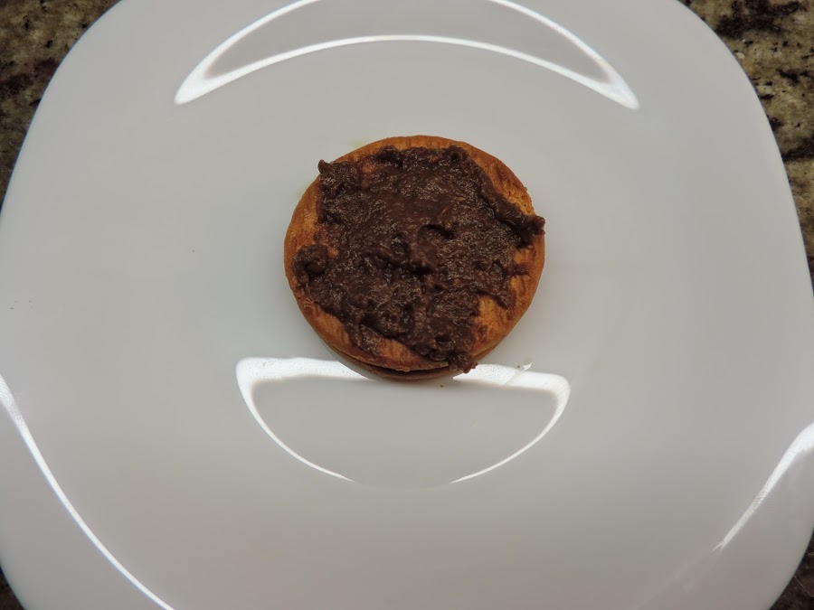Mojamos bien las galletas y le ponemos encima un poco de crema de chocolate.