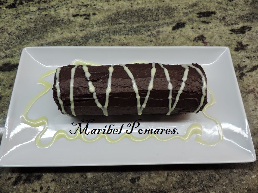 Le ponemos un poco de chocolate blanco por encima y en el plato. Lo dejaremos un rato en el frigorífico para que el chocolate blanco se ponga duro.