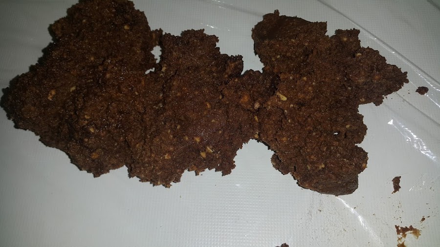 A continuación añadimos la leche y el cacao al polvo de galletas. Mezclamos muy bien hasta conseguir una pasta muy pegajosa.