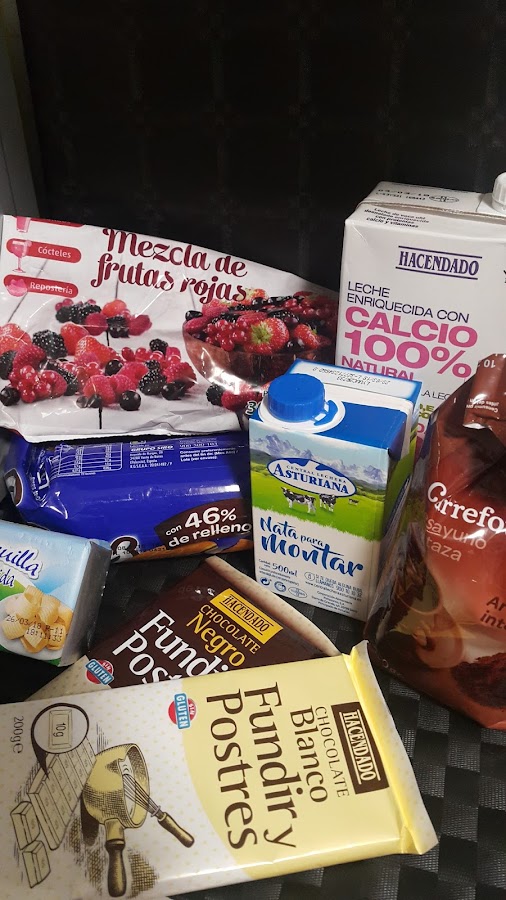 Como ya es tradición os traigo el tronco de navidad que he preparado este año. Consiste en una base de chocolate con mousse de chocolate blanco y frutos rojos. Vamos con los ingredientes: