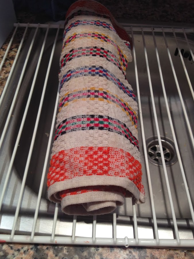 Volcar el bizcocho encima del paño e ir enrollando todo junto.
