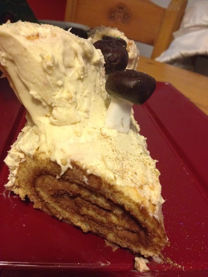 Forrar todo con el ganache y poner las esquinas que había cortado por encima simulando un tronco.