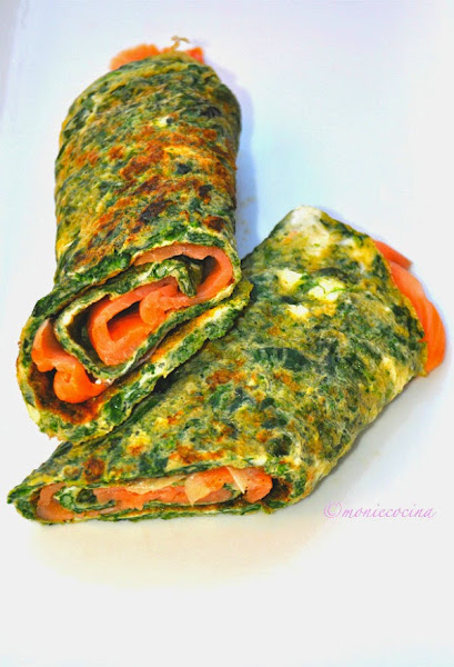 En una sartén anti adherente cocinamos como una tortilla francesa normal por los dos lados. Sacamos y en el plato enrollamos con el salmón ahumado. Emplatamos y a disfrutar!