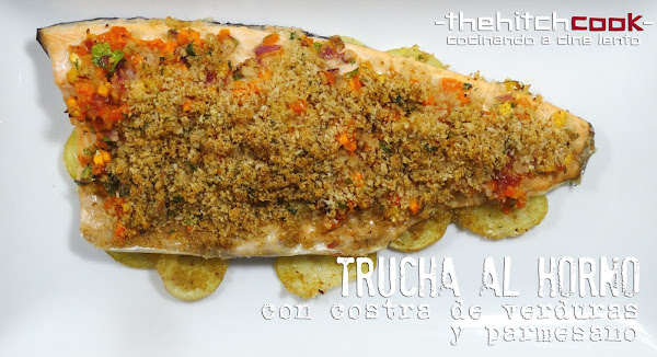 Lo único que vamos a necesitar es tener el horno a punto, que es el protagonista de la cocción. Más allá se abre un universo de sabores, aromas, colores... todo un tarro de esencias mediterráneas y saludables para dotar a una solitaria trucha de una vistosidad y jugosidad incomparable. Todo un juego de mar y huerta en la mesa.