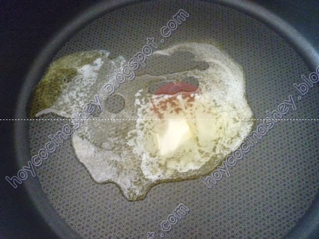 Después agregamos un poco de el agua reservada con harina de maíz para darle cuerpo a la salsa: