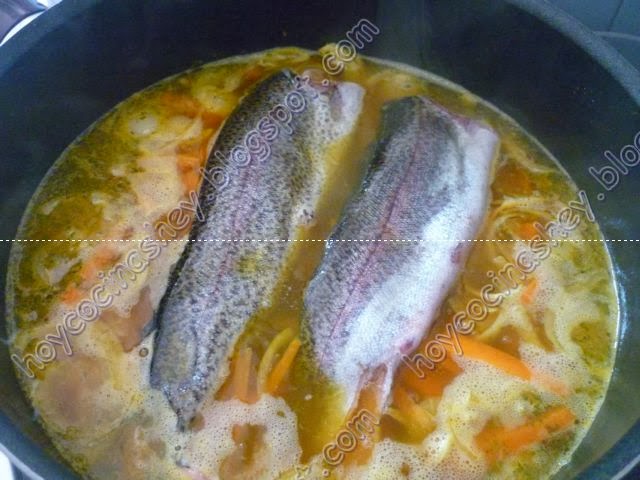 Ahora nos toca poner las truchas cocer y agarren los sabores: