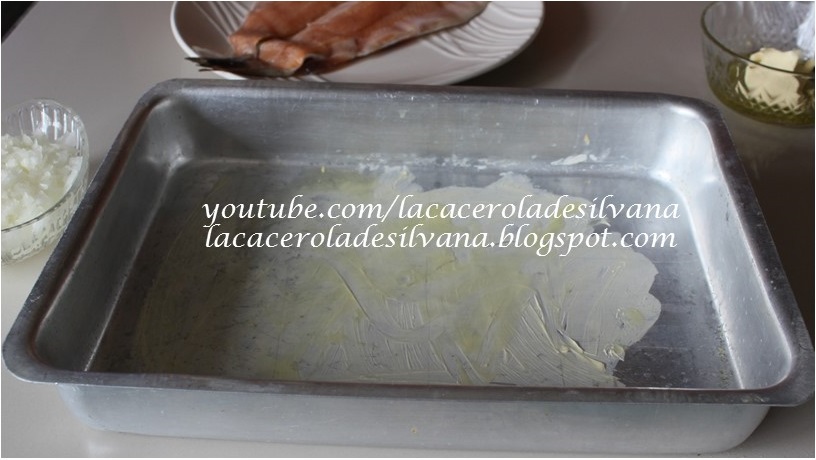 Continuar la preparación externa colocando tres tozos de mantequilla y dos cucharadas de aceite de oliva