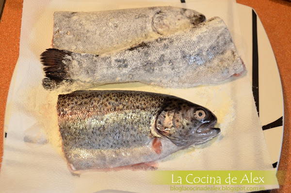 Para hacer las truchas, las ponemos en la sartén con aceite de oliva bien caliente y las cocinamos por ambos lados a fuego medio-alto hasta que estén hechas y la piel bien crujiente.