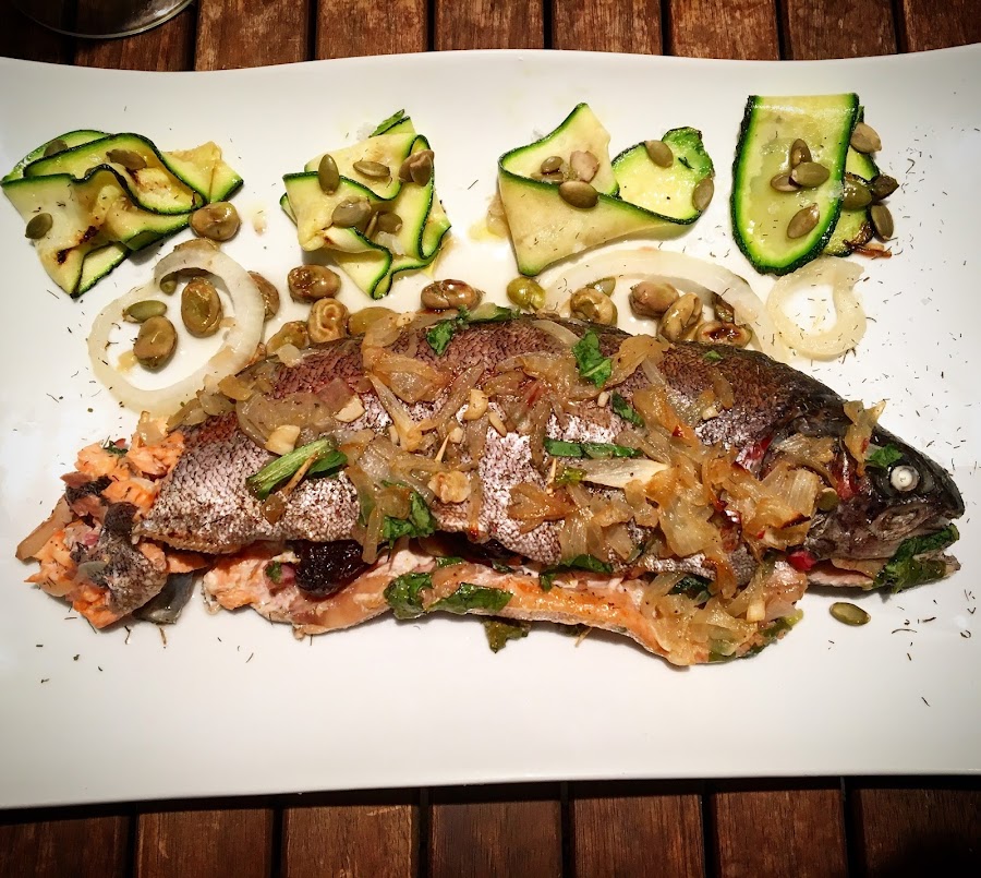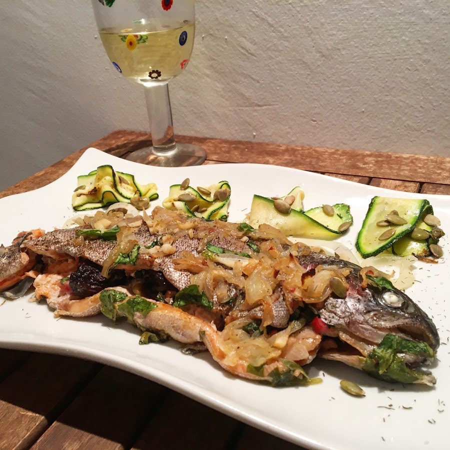 (Forelle gefüllt mit Speck und Dörrpflaumen)