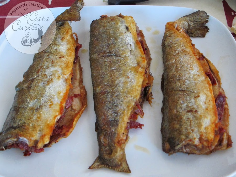 Hacemos tiras el jamón ibérico y rellenamos el pescado, ponemos una sartén grande al fuego con un poco de aceite, unas 3 cucharadas aproximadamente, colocamos las truchas con cuidado de que no se salga el jamón y dejamos dorar, unos 4 minutos por cada lado, cuando las truchas estén ya bien doradas solo tendremos que servir en los platos.