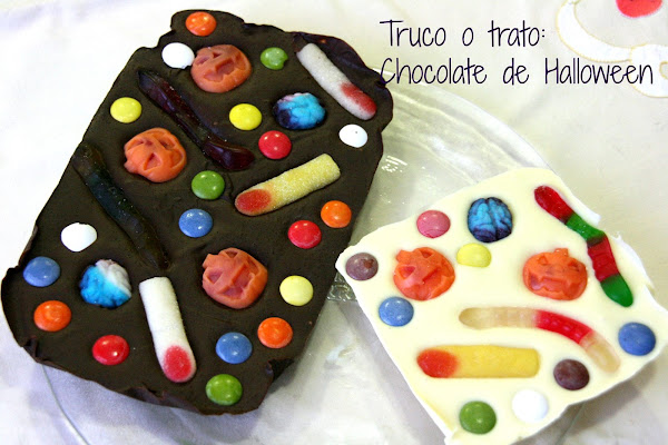 Como veréis no tiene ninguna complicación. Sólo se trata de fundir chocolate con cuidado de que no se queme. Una vez fundido, repartir sobre un papel de hornear (da igual que no quede con una forma cuadriculada o redondeada). Repartir por encima las chuches, lacasitos, conguitos, ... Y dejáis enfriar. Una vez frío veréis que se despega fácilmente del papel y cortais las porciones como más o guste. Y ya solo queda esperar para repartir o comer.