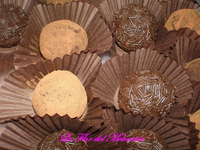 Hacemos las bolitas y las cubrimos con cacao en polvo o con fideos de chocolate. Las conservamos dentro de la nevera hasta la hora de servirlas.