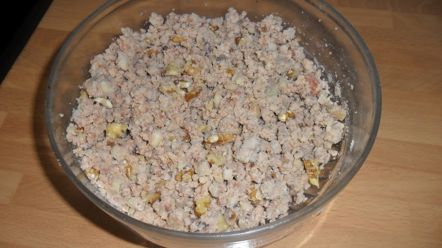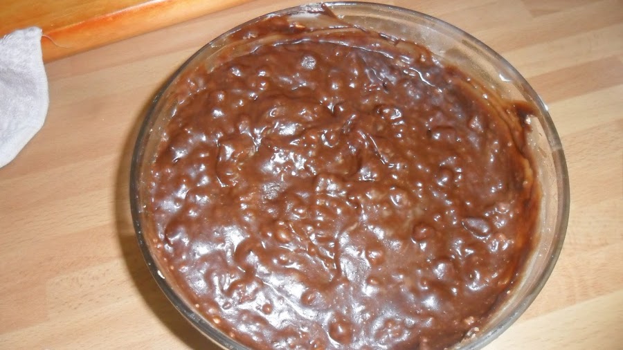 Ponemos las castañas cocidas en un bol,las trituramos con un tenedor para que nos queden trocitos pero pequeños. Añadimos el chocolate integrándolo muy bien con el resto de ingredientes (menos el chocolate en polvo).
