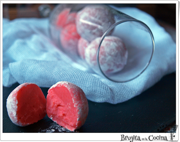 Hacemos bolas que rebozamos por azúcar glass y listo.