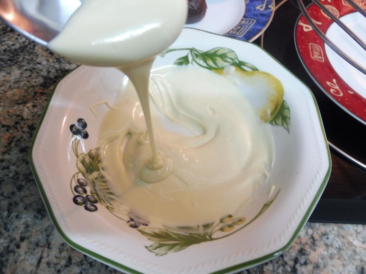 Nota: no recomiendo en absoluto derretir el chocolate blanco en microondas ya que tiende a formar grumos y de ese modo,lo echamos a perder. Mientras se derrite el chocolate no se debe añadir NINGÚN líquido (leche,nata (crema de leche),aromas o colorantes)
