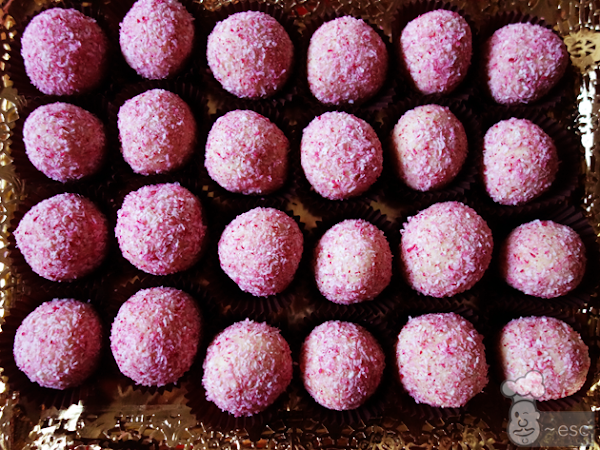 Las trufas de chocolate blanco se pueden dejar tal cual, sin añadir ningún saborizante o aroma, pero tienen otra gracia si le ponemos un "extra". Las que publico hoy llevan el coco caramelizado y un toque de aroma de naranja.