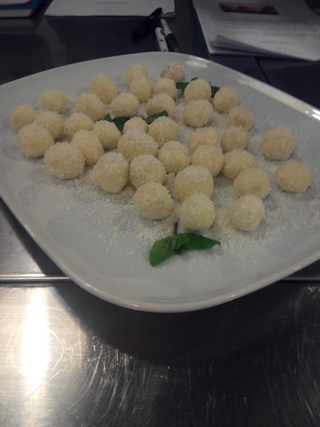 Una vez pasado el tiempo vamos haciendo bolitas y las bañamos en coco.