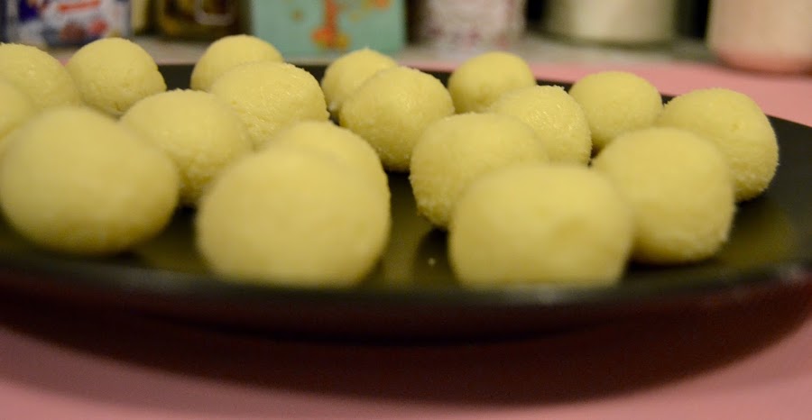 La vamos a dejar enfriar a temperatura ambiente. Cuando este ya tibia, la vamos a llevar a la heladera hasta que este dura. Luego la vamos a sacar, y mientras este dura, con dos cucharas o con la mano, hay que armar las bolitas. No tienen que ser muy grandes, ya que se deben comer de un solo bocado y si son muy grandes, resultan un poco empalagosas.