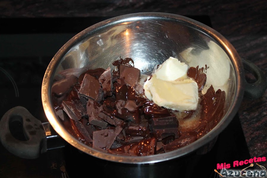 Fundimos los tres tipos de chocolates junto con la mantequilla al baño maría.