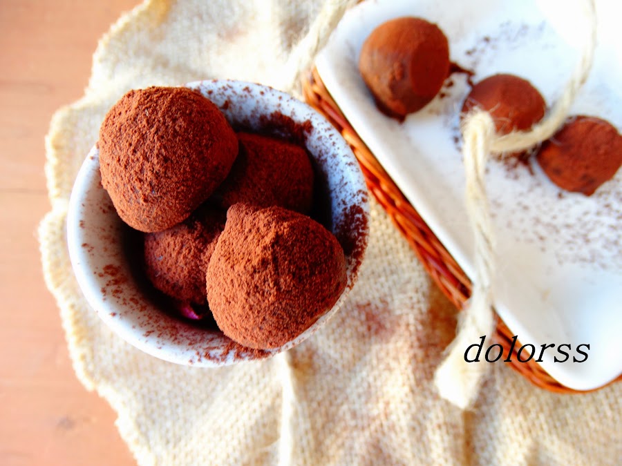 ** Si en la nevera antes de poner el cacao en polvohan endurecido demasiado y este no se adhiere, dejadlas un poco a temperatura ambiente para que se reblandezcan un poco.