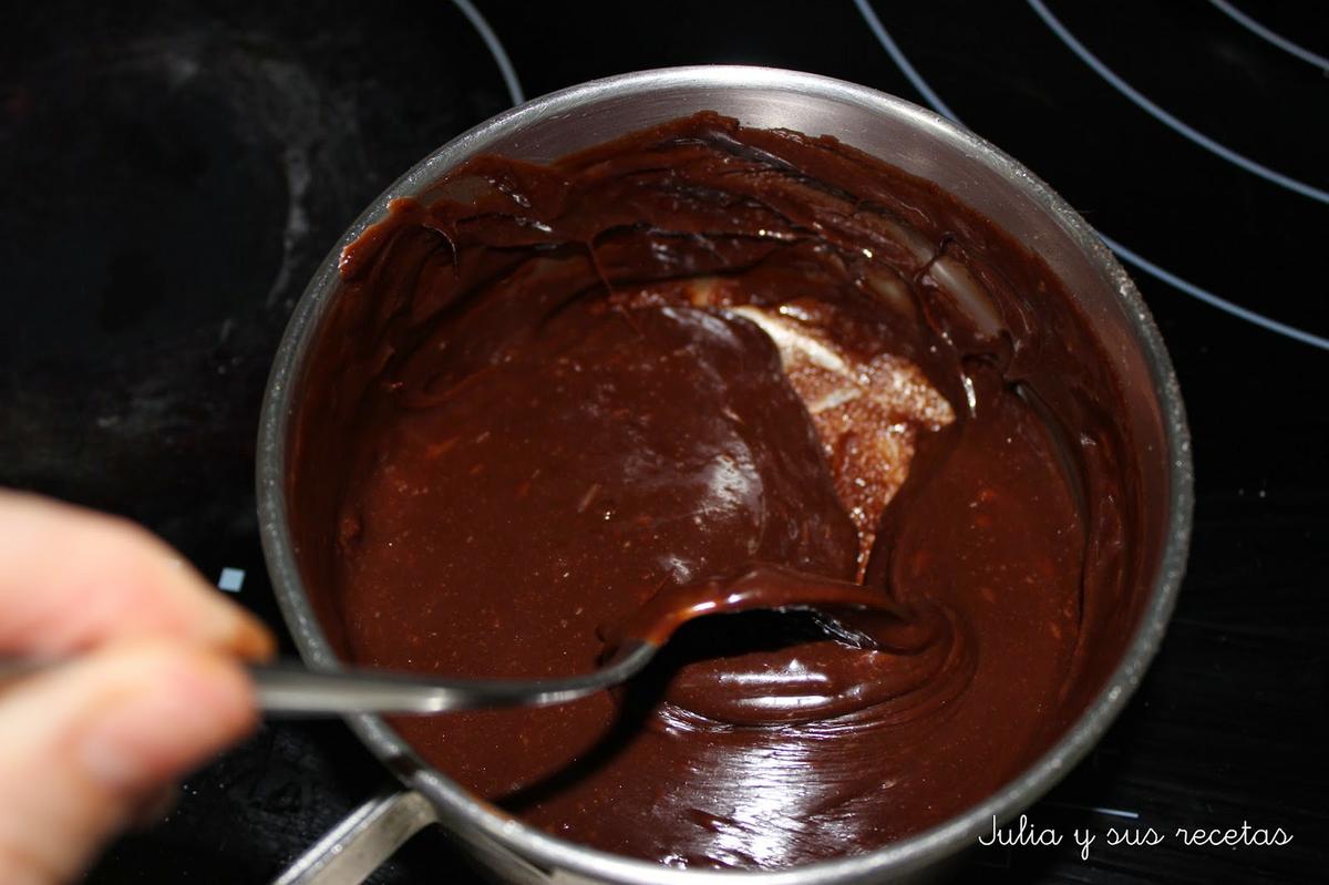Lo ponemos a fuego medio dandole vueltas constantemente hasta que espese y se forme una crema que se despegue del fondo.