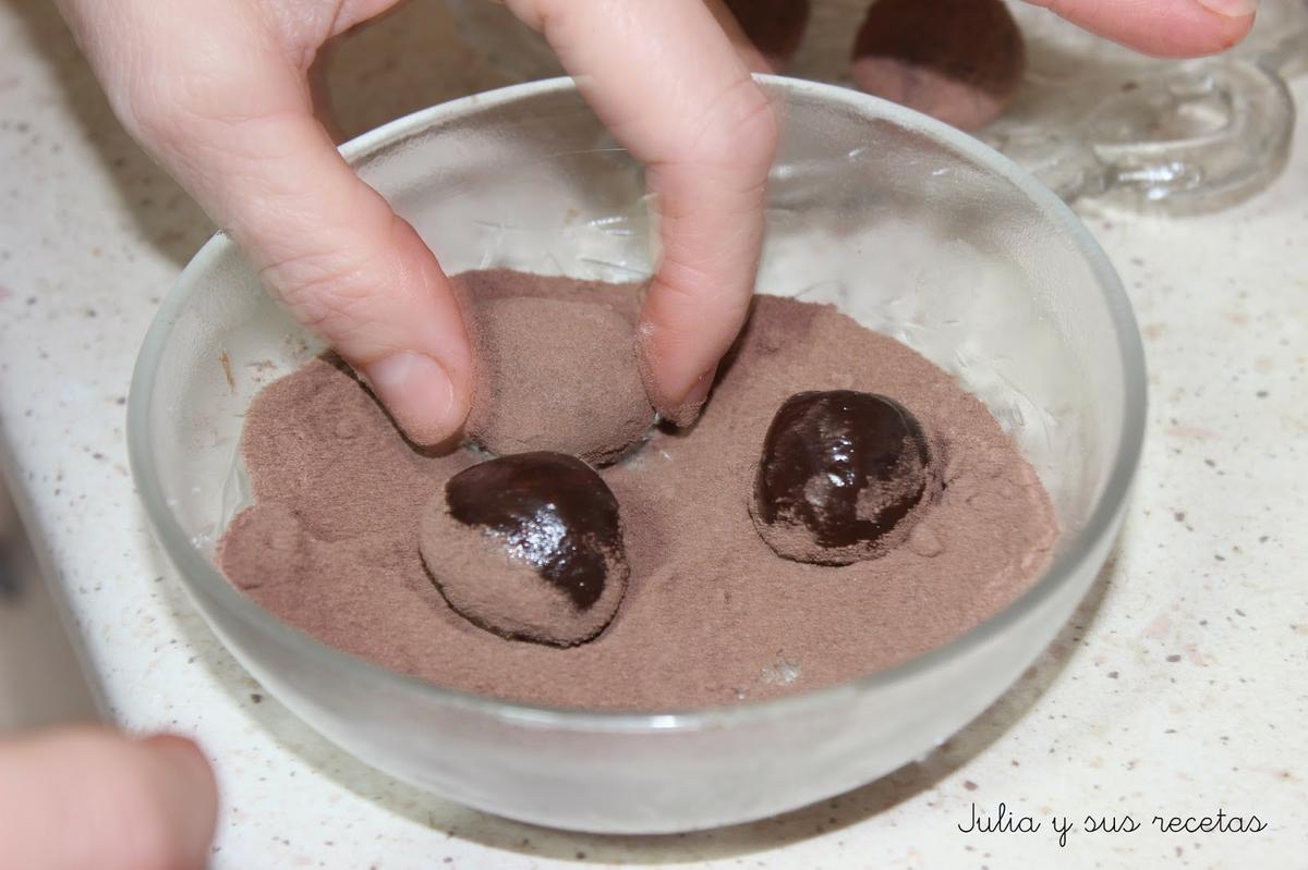 Hoy os dejo unas trufas de chocolate con leche condensada muy ricas y además muy fáciles de hacer. Son ideales para tomar después de una comida , al ser pequeñitas no llenan demasiado , o para un picoteo cuando nos dan deseos de algo dulce...te echas una a la boca y te inunda un rico sabor a chocolate...!! y ademas sin alcohol ,así podrán comerlas también los niños, su textura es parecida a los caramelos masticables.