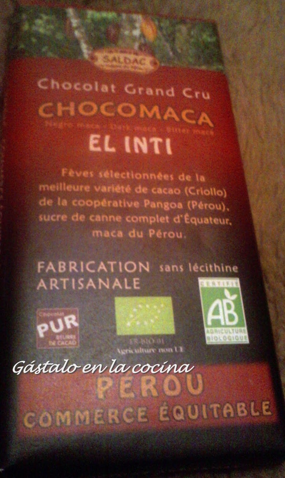 Esta es la foto del chocolate, de Perú, de comercio justo y biológico. Merece la pena, y encima tiene maca, por lo visto un afrodisíaco y bueno para la fertilidad entre otras cosas. Podeis verlo aqui, en wikipedia www.es.wikipedia.org/wiki/Lepidium_meyenii