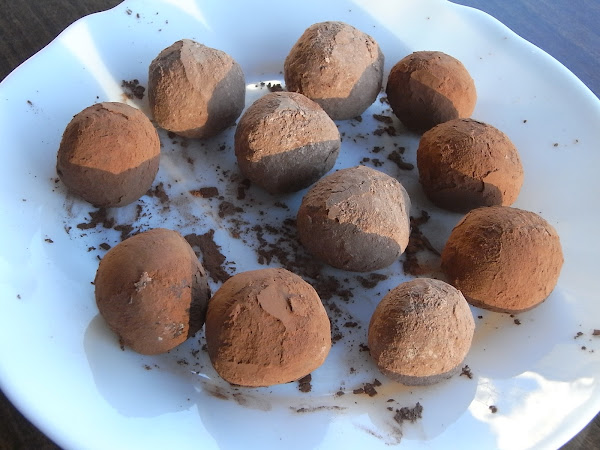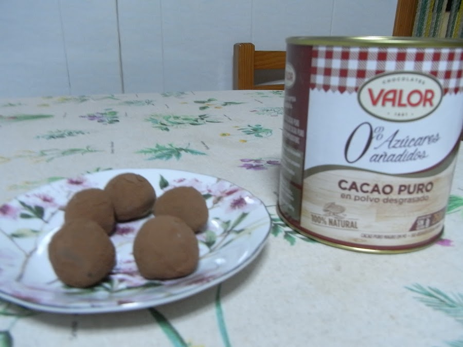 Las trufas de ahora son más ligeras, pero éstas son como las de antes consistentes y golosas y con un toque de brandy. Se pueden recubrir con fideos de chocolate o de colores pero a mí me gustan con cacao puro, del amargo, que contrasta perfectamente con la trufa dulce. También suelo hacer alguna con cacao a la taza o con el cacao soluble para la leche (tipo Colacao) porque no a todo el mundo le gusta el amargo.