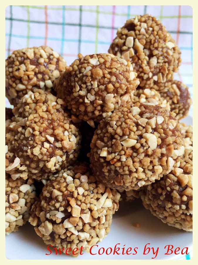 Pasado este tiempo sacamos y hacemos bolitas con una cucharadita, envolvemos con las almendras y listas!!!!!!!!