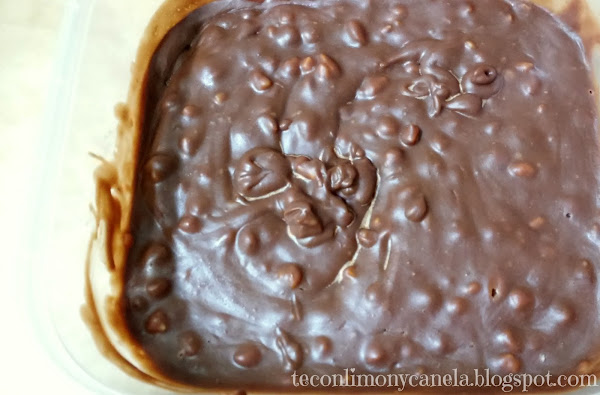 - 5 ó 6 cucharadas de mantequilla de cacahuete con trocitos