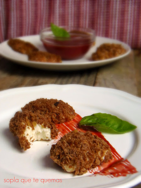 También he querido jugar con el nombre de la receta, y con la forma, gracias al rebozado de pan de centeno parecen trufas, ingrediente del queso de oveja al tartufo.