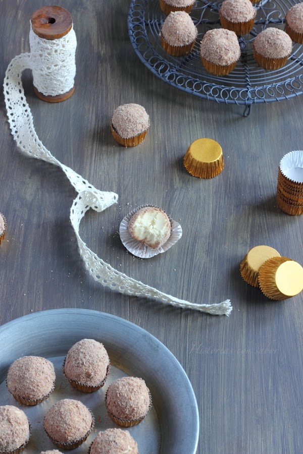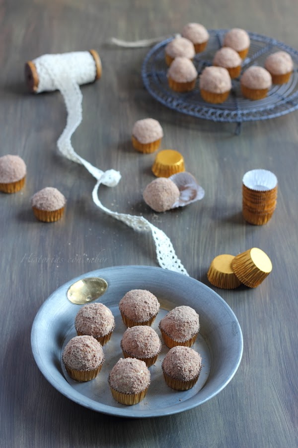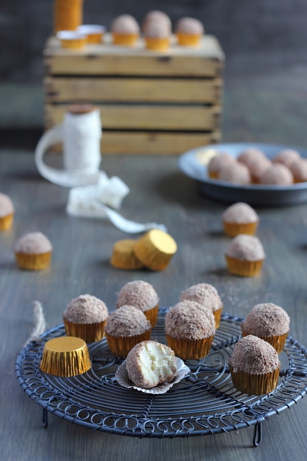 Como quería probar algo distinto, he decidido hacerlas simulando al magnífico postre que es el tiramisú. Así al comer una de estas trufas es como sí estuviéramos comiendo una cucharada de este postre tan delicioso que en casa nos encanta.
