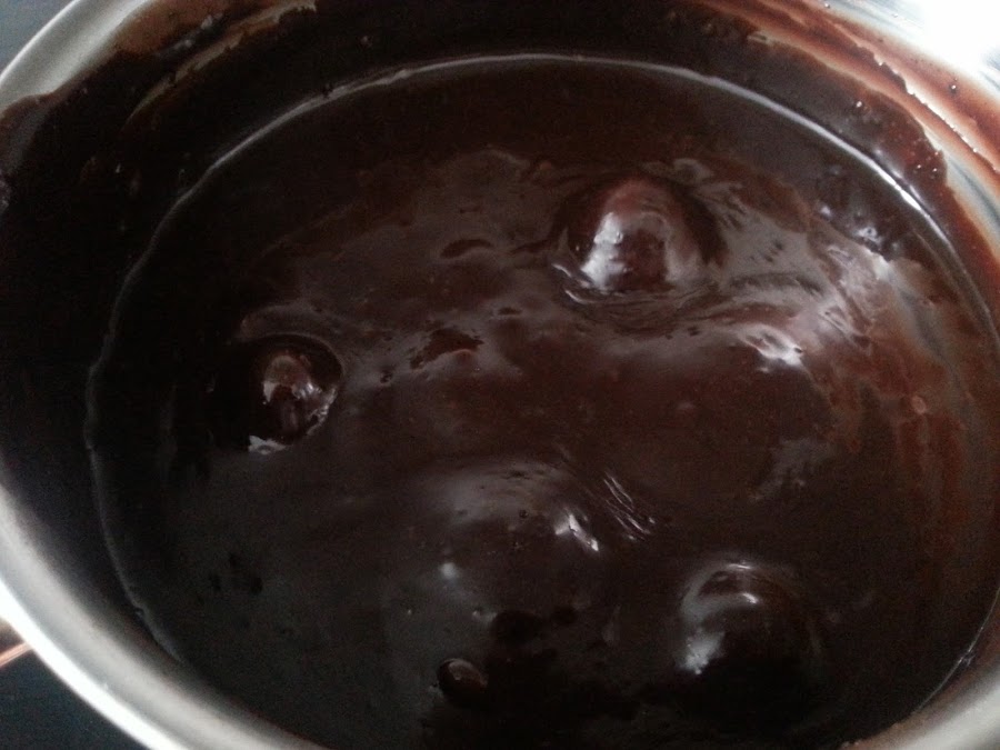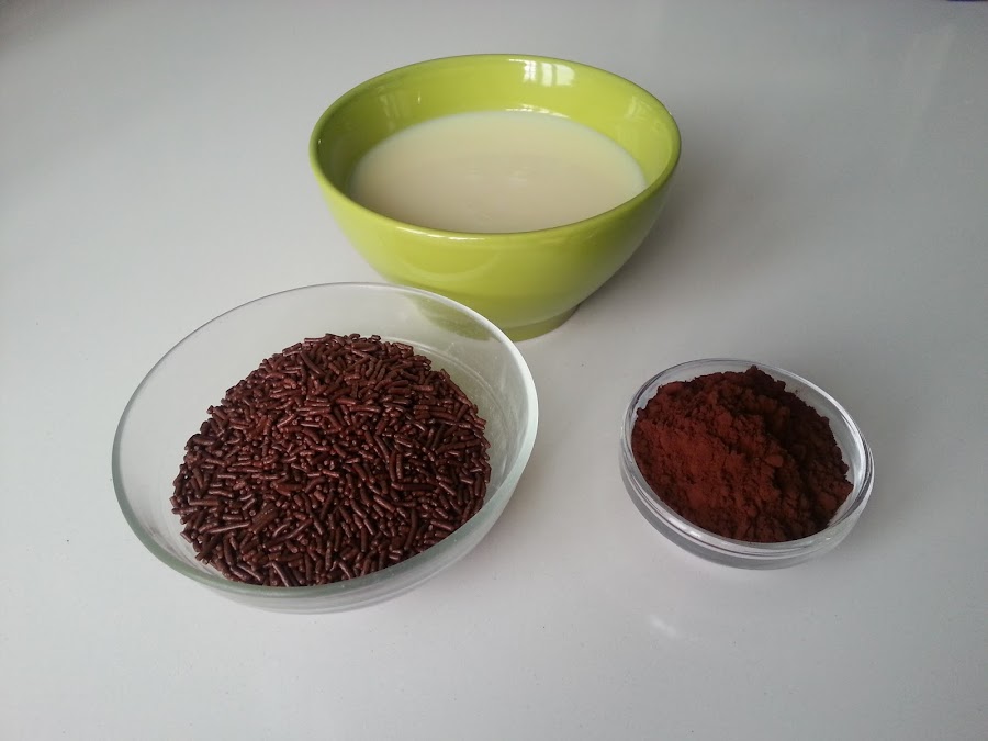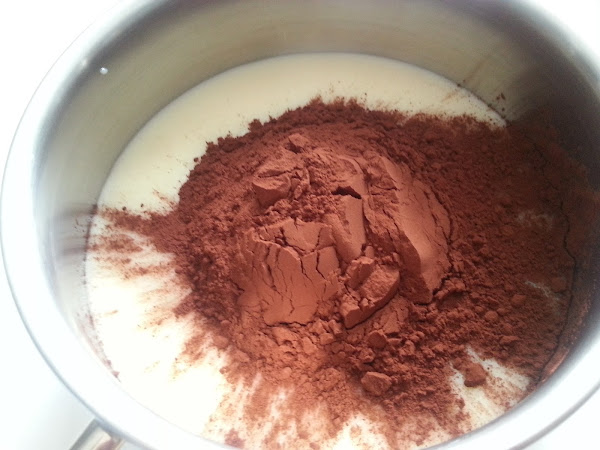 1. - En primer lugar mezclamos en un cazo la leche condensada con el cacao y removemos hasta que esté bien ligado.