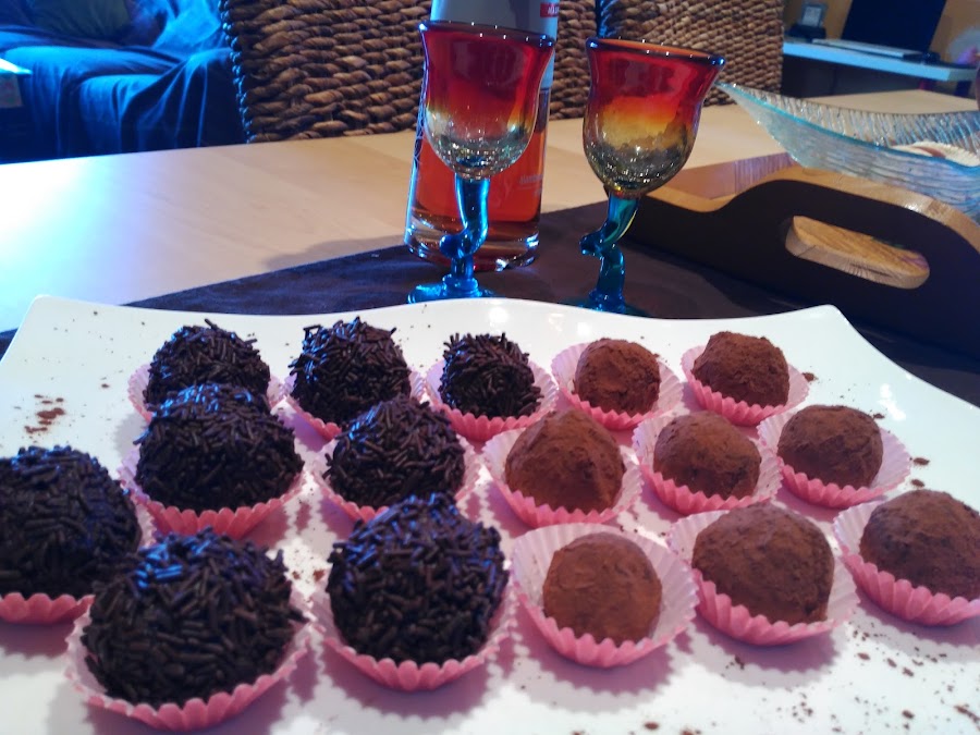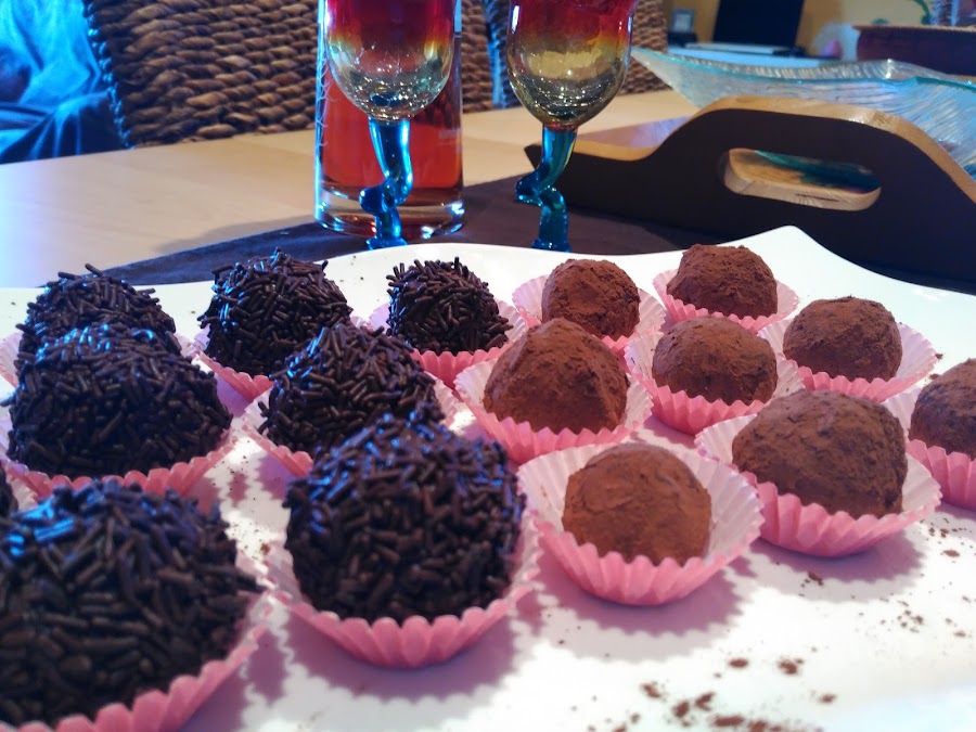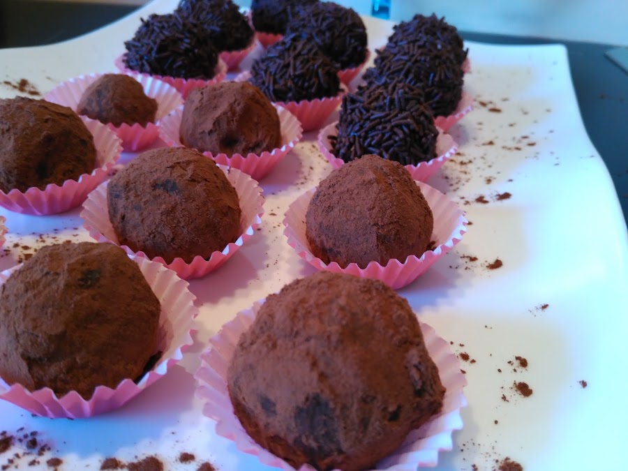- Sacr de la nevera, ir haciendo bolitas y rebozando con el cacao o los fideos...et voilà...escondedlas...