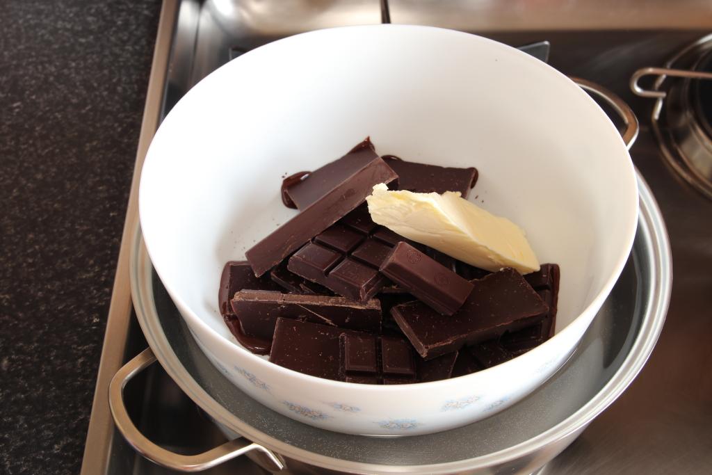 Ponemos el chocolate troceado y la mantequilla en un bol amplio y fundimos al baño María a fuego suave, removemos que se vaya fundiendo poco a poco. Echamos la nata (crema de leche) líquida en un cazo y la calentamos a fuego suave hasta que hierva, retiramos del fuego e incorporamos el ron, removemos.¡Un capricho de dioses a nuestro alcance!