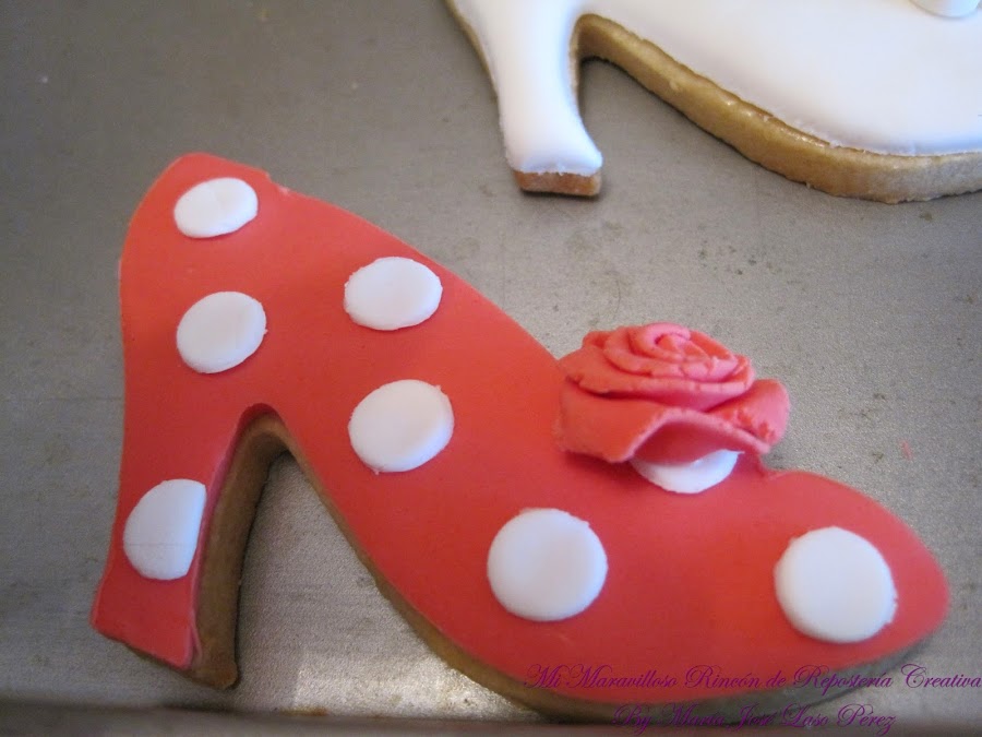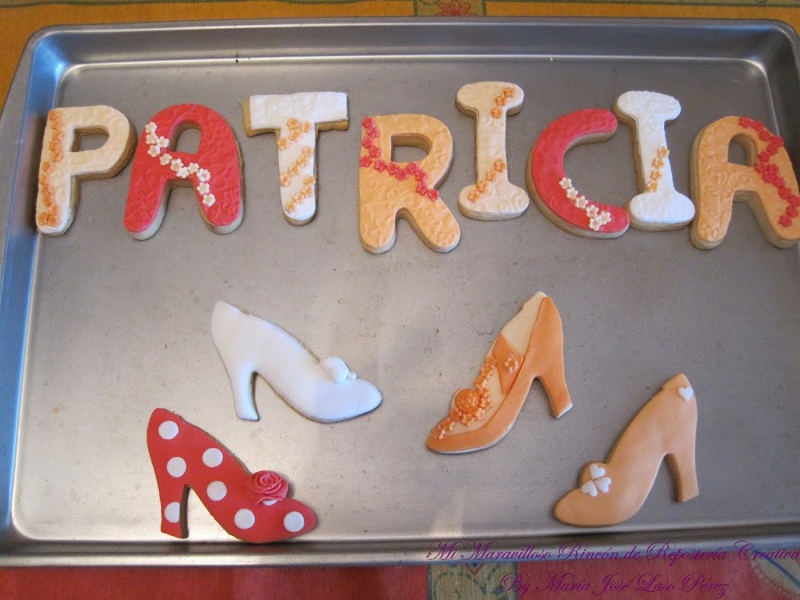 Cuando pienso en Patricia, la veo con esa fresca juventud, luciendo sus zapatos de tacón ¡tan bonitos! Y eso fue lo que me dio la idea para inspirarme a la hora de hacer sus galletas de cumpleaños. Es una edad en la que se cuida mucho el aspecto físico, se empieza a presumir y a querer estar guapa para los chicos. ¡Qué etapa tan soñadora esa de la adolescencia! Pues así quedaron las galletas de Patricia...