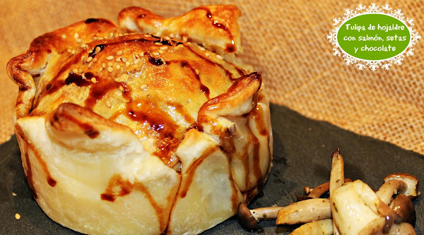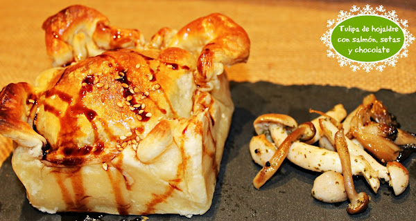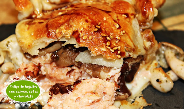 Hojaldre con setas, queso, salmón y me atreví con el chocolate. La combinación de todos estos ingredientes resultaron todo un regalo para el paladar.