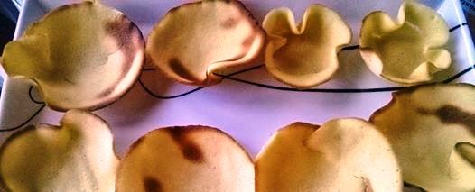 Ponlas en el horno hasta que doren por abajo (unos 5 minutos) y en cuanto veas que estén secas y doradas, sácalas muy rápidamente, con la ayuda de una espátula y colócalas sobre un cuenco para que tomen la forma. Esta operación tiene que ser muy rápida porque una vez fríos no los podrás manejar y se romperán.