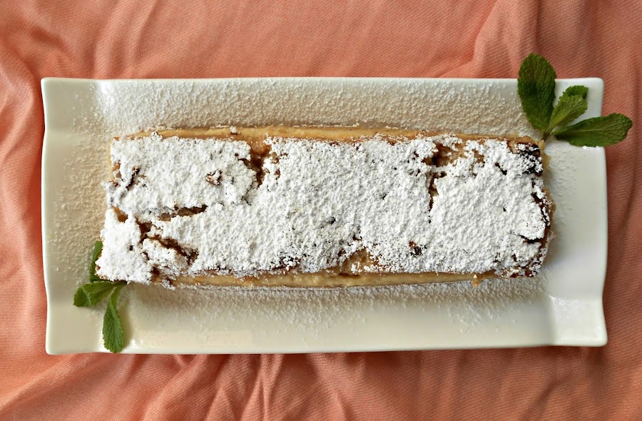 La receta pone que se cocina a baño María, pero yo lo cociné directamente en el horno y seguramente por eso se me quemó un poco por debajo, nada que no se pueda arreglar con un poco de azúcar glas, ja, ja, ja...( no creo que haya sido culpa del Sr.Teloquemotodo, léase mi horno).