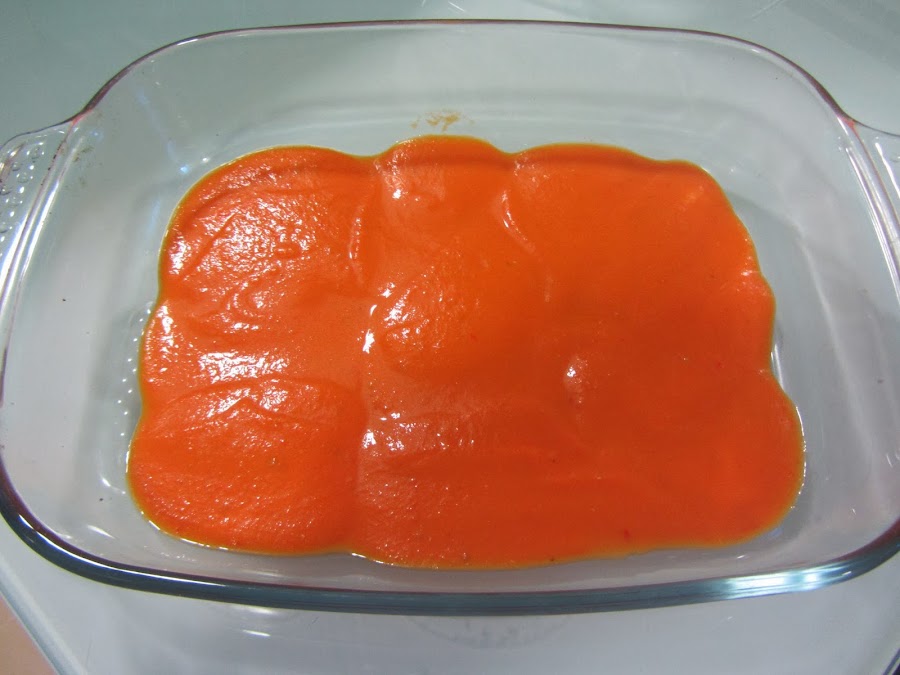 Y, en una fuente refractaria, pondremos una base de salsa de tomate