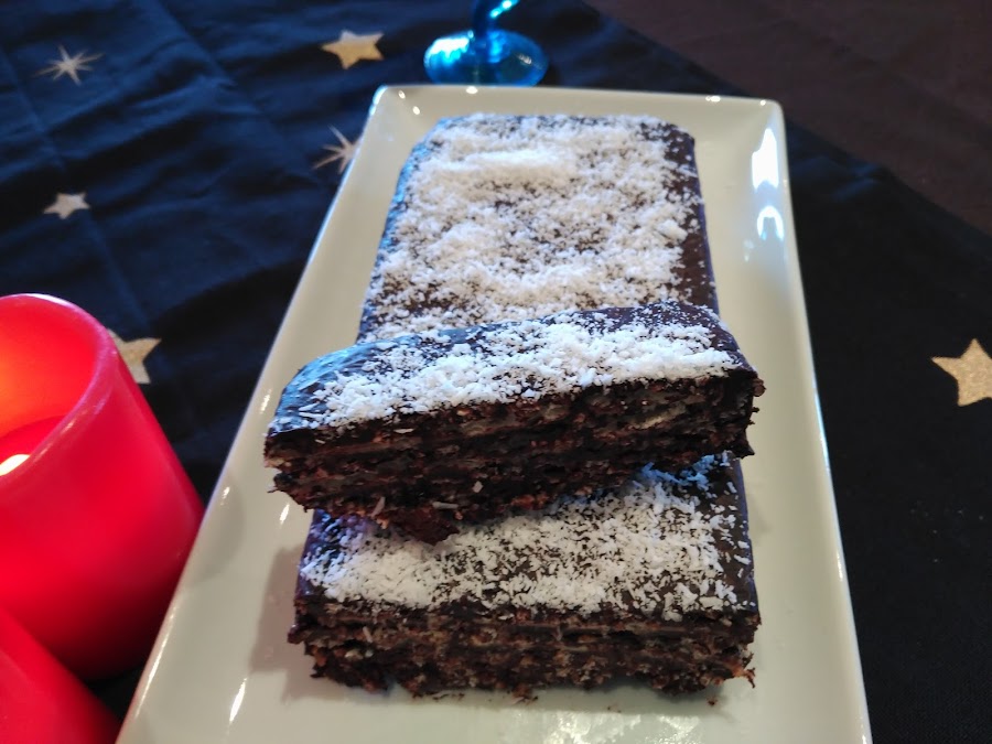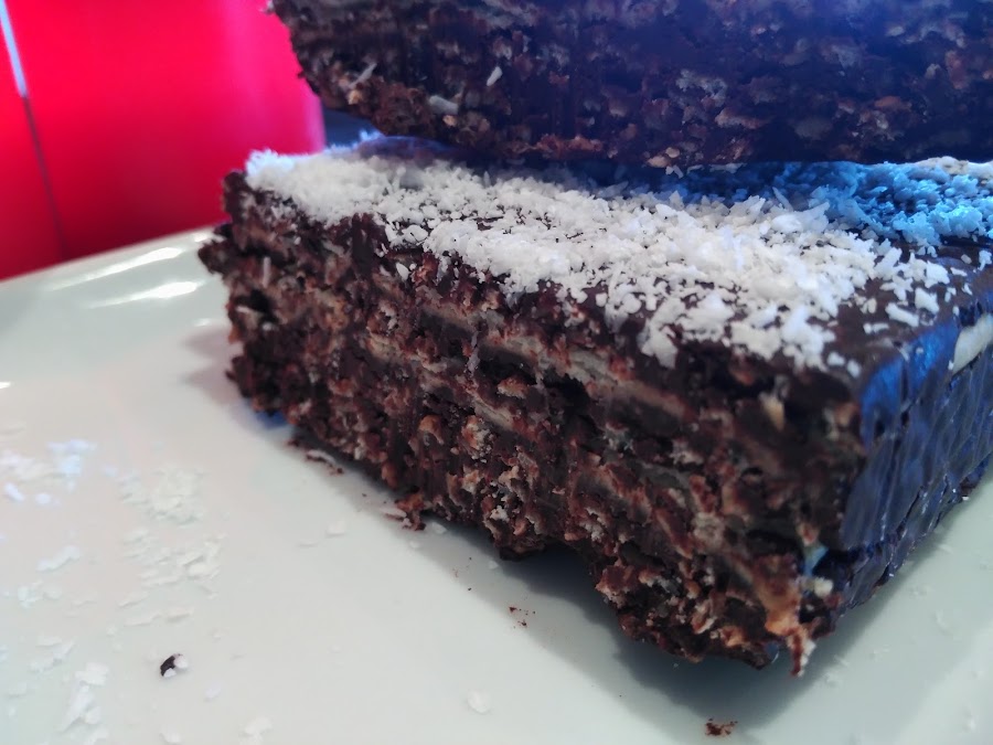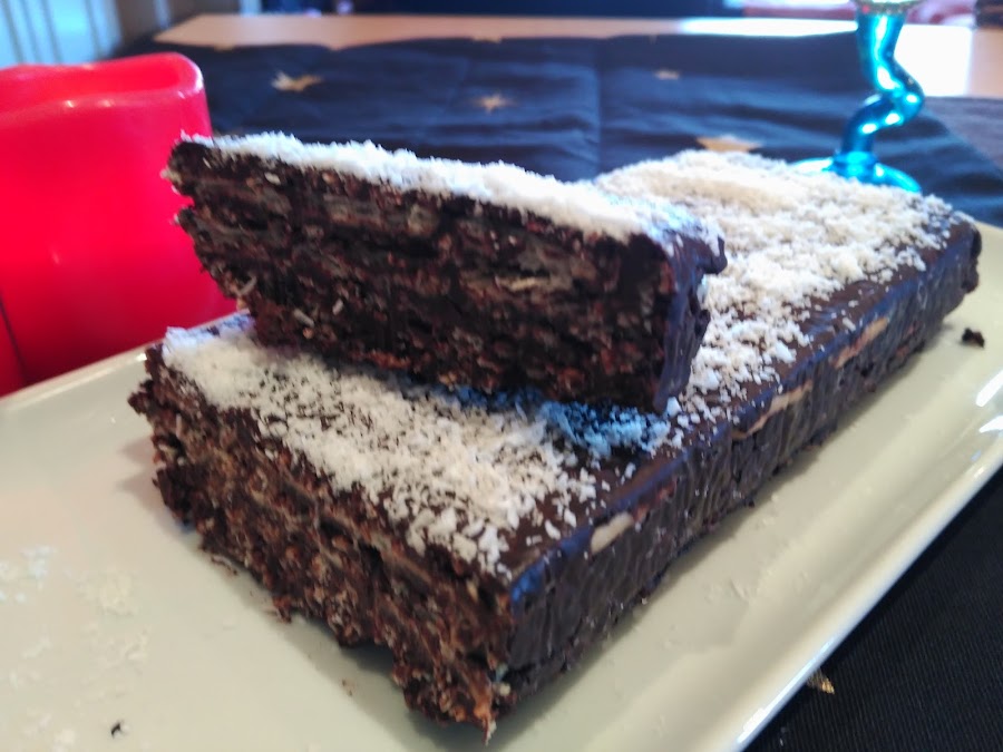 - Volvemos a cubrir con chocolate, repetimos la operación con las galletas, y acabamos con chocolate.