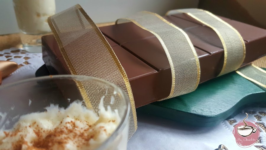 Colocamos el chocolate troceado en un bol al baño maría y lo derretimos. Cuando esté listo añadimos la manteca de cacao y dejamos atemperar antes de cubrir el molde.