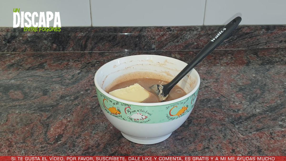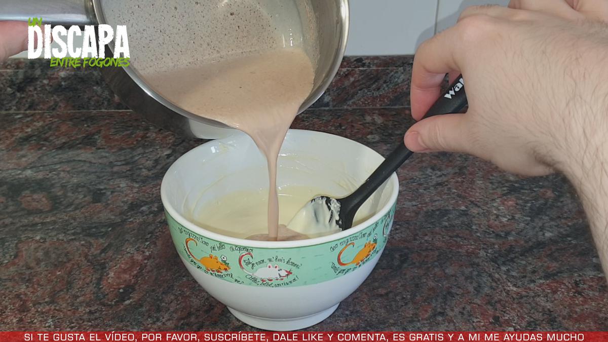 Lo añadimos poco a poco y vamos mezclando hasta que se integre bien.