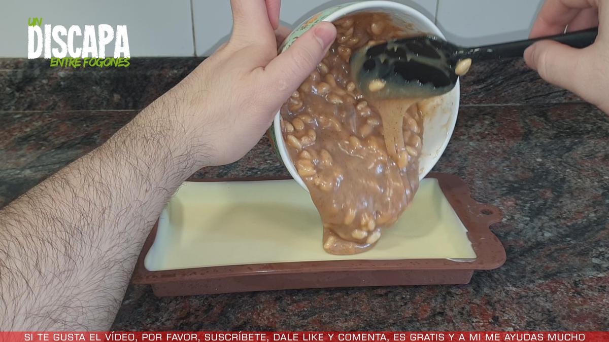 Después añadimos la mezcla al molde. Lo repartimos bien. Y lo llevamos a la nevera unas horas hasta que se endurezca.