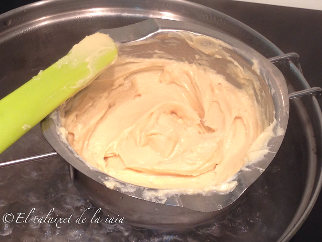 Poneos a calentar al baño María la tableta y media de chocolate, con los 40g de manteca de cerdo