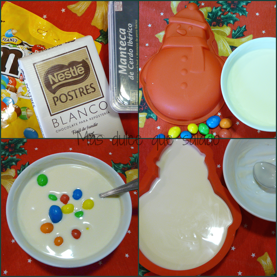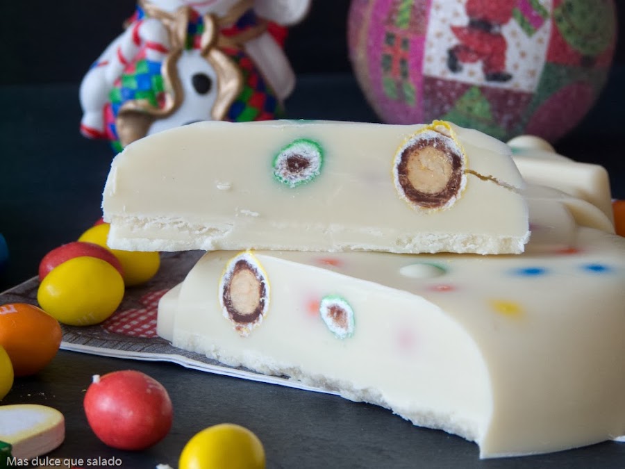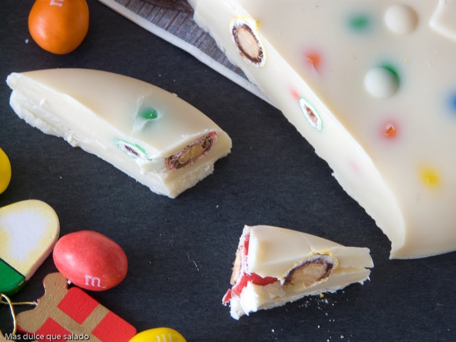 De nuevo receta navideña y además muy sencilla: Turrón de chocolate blanco relleno de M&M"s.